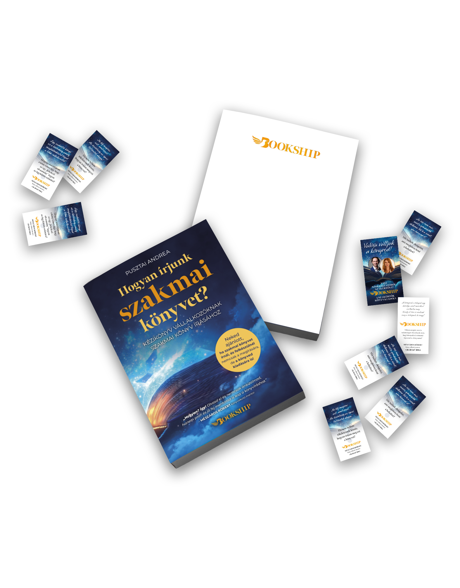 A csomag tartalmazza a „Hogyan írjunk szakmai könyvet” kézikönyvünket, emellett tartalmazza a biankó könyvünket, ami teljesen üres és csak arra vár, hogy Te megtöltsd a saját tudásoddal.